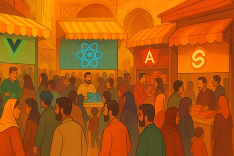 نبرد فریمورکهای فرانت اند: مقایسه Vue, React, Angular و Svelte از نظر سختی، عملکرد و بازار کار
